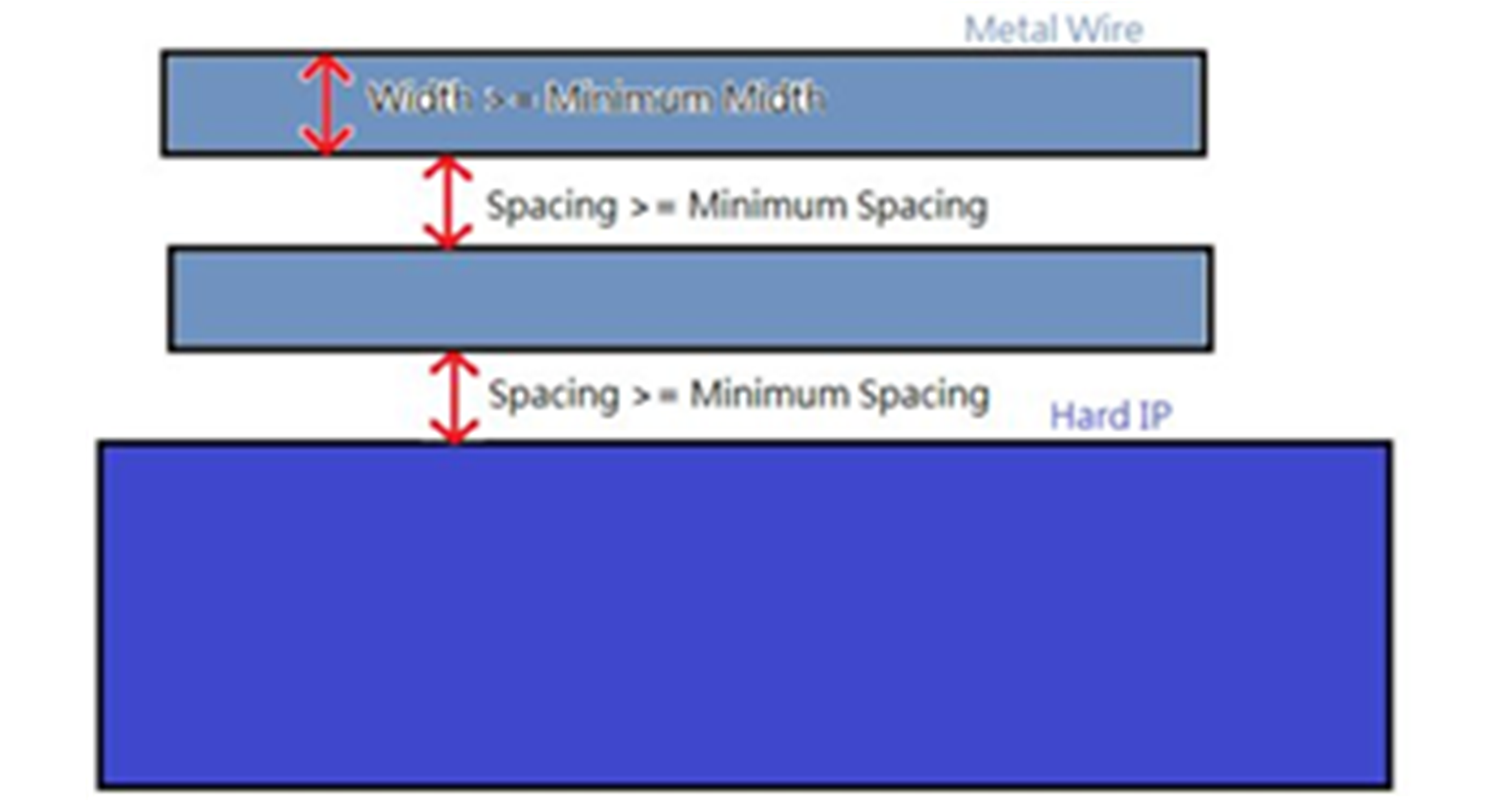 - Two hard IPs may abut (i.e. spacing is 0). The spacing rules between metal wires and hard IPs are the same as that given in guideline 3.