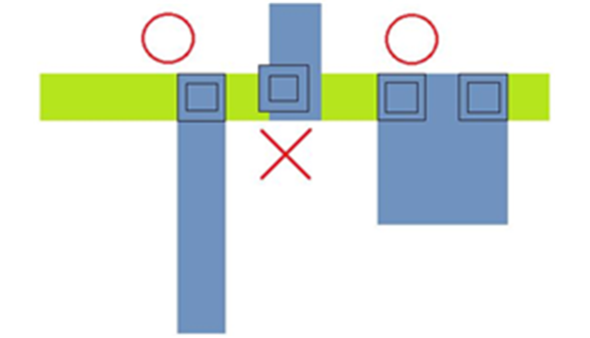 關於wire包覆via的問題。如附圖,黑框是via大小,水平wire跟垂直wire在不同layer。請問這樣是legal的嗎?