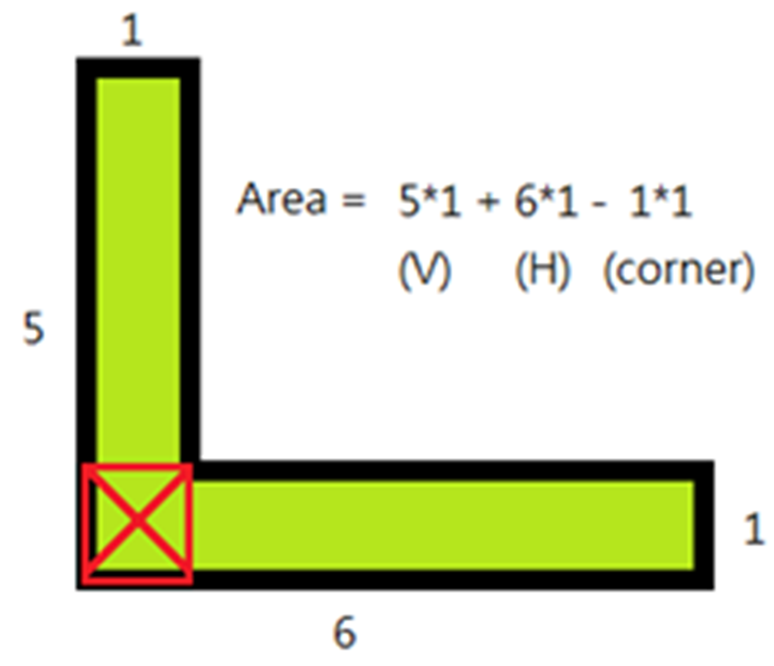 - When the total metal area of a bent wire is calculated, the overlapped area at corners should not be counted repeatedly.