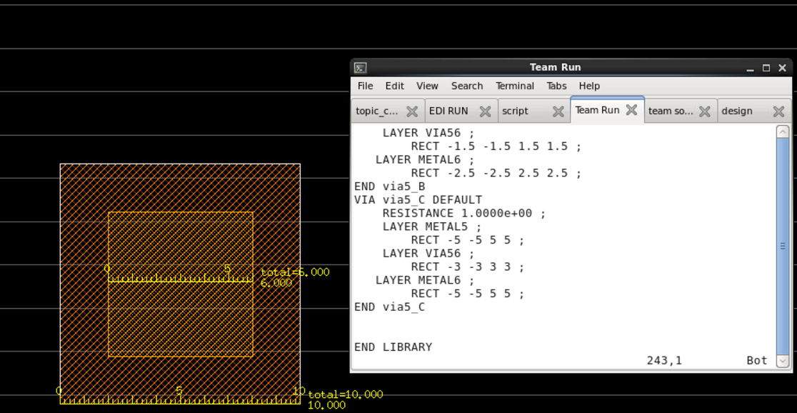 - The via size is defined in tech.lef. The contestants can insert more than one via in an enclosed area (see the figure below). Parallel resistance due to employing multiple vias should be considered.